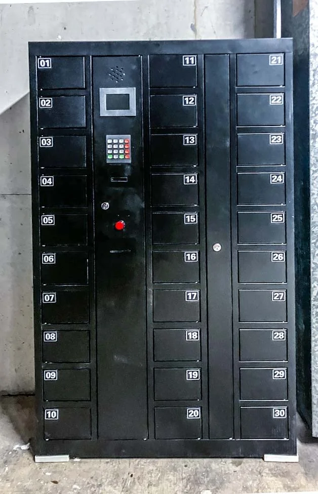 03. Once you have arrived in this corner. You will find the Smart Locker on your right behind this silver duct.